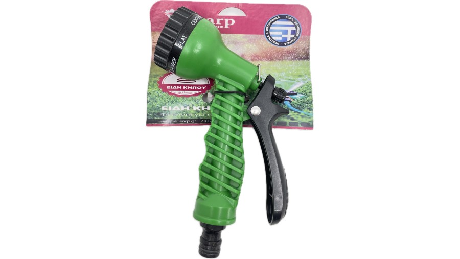 πιστόλι λάστιχου κήπου με διάφορους πίδακες.
