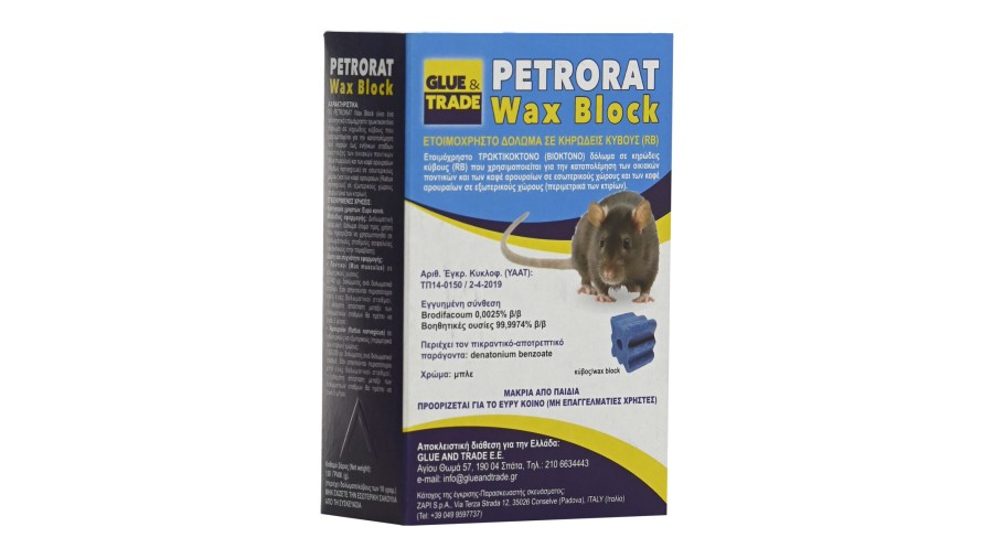 Ετοιμόχρηστο τρωκτικοκτόνο δόλωμα σε κηρώδεις κύβους που χρησιμοποιείται για την καταπολέμηση των οικιακών ποντικών και των καφέ αρουραίων σε εσωτερικούς και εξωτερικούς χώρους.