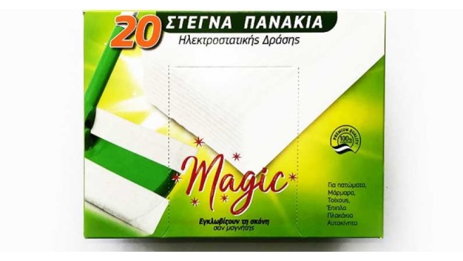 Magic Cloth Ηλεκτροστατικά Πανάκια (20τεμ). Εγκλωβίζουν την σκόνη σαν μαγνήτης, αποτελεσματικά για πατώματα, μάρμαρα, τοίχους, έπιπλα και πλακάκια, επιβραδύνουν τη συγκέντρωση της σκόνης.