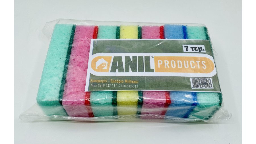 Σετ 7 σφουγγαριών κουζίνας διαφόρων χρωμάτων 11εκ Χ 3εκ Χ 5,5εκ