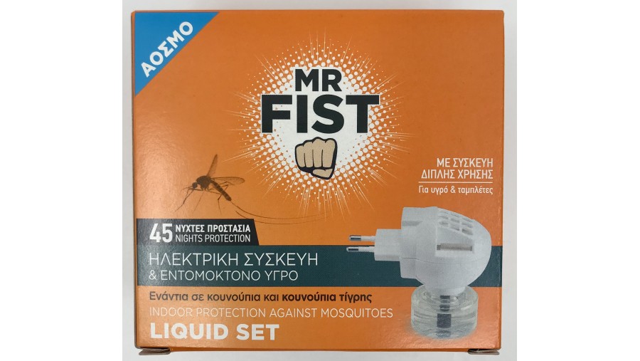 Εντομοαπωθητική ηλεκτρική συσκευή MR. FIST , με υγρό που απωθεί κουνούπια και σκνίπες από το χώρο σας.
