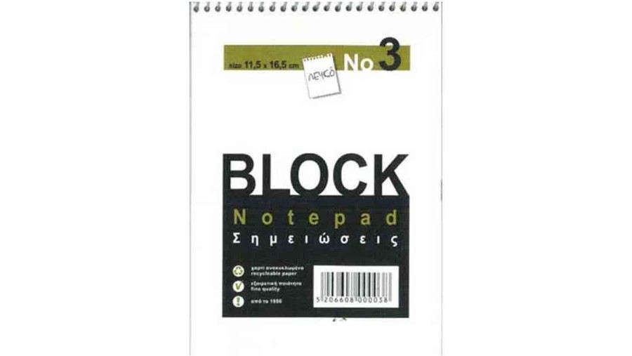 ΜΠΛΟΚ ΣΗΜ.ΣΠΙΡΑΛ Ν.3 ΛΕΥΚΟ (11,5 x 16.5)50φ.(πακ/20τεμ)