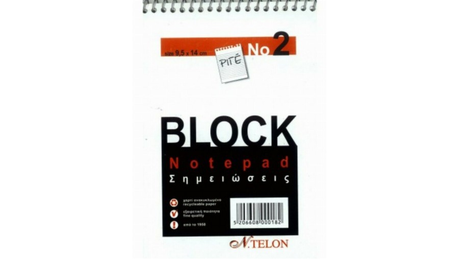 ΜΠΛΟΚ ΣΗΜ. ΡΙΓΕ Ν.2 ΣΠΙΡΑΛ ( 9,5 x 14cm)50φ./τεμ