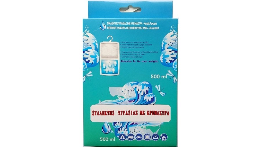 Κρεμάστρα συλλέκτη υγρασίας. Απορροφάται έως 500ml. της υγρασίας και αποτρέπει τη μούχλα. Διαθέτει γάντζο για ανάρτηση. Χωρίς άρωμα.