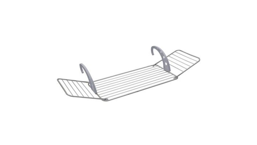 Μεταλλική απλώστρα μπαλκονιού με πλαστικούς ρυθμιζόμενους βραχίονες ώστε να εφαρμόζουν σε κάθε χώρο.Απόλυτα πρακτική κατασκευή καθώς παρέχει συνολικό μήκος απλώματος 18 μέτρων, λόγω των δύο φτερών που έχει στα άκρα