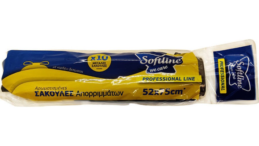 Σακούλες απορριμμάτων, της εταιρείας Softline Fresher, γίγας, κατάλληλες τόσο για επαγγελματική, όσο και για οικιακή χρήση. Διαθέτουν κορδόνι, το οποίο βοηθά στην εύκολη μεταφορά και στο κλείσιμο.