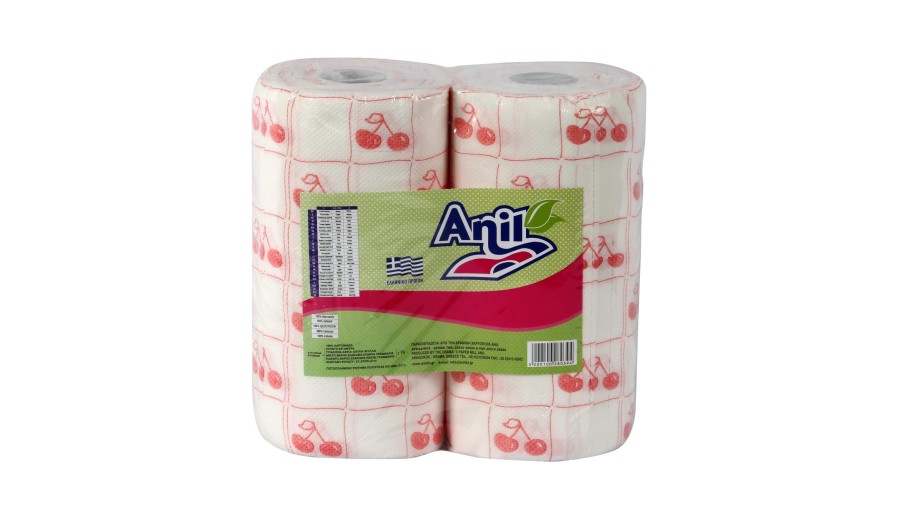 Extra απορροφητικό και ανθεκτικό ρολό κουζίνας 2φύλλων με σχέδιο κερασάκι, point to point, κατάλληλο για κάθε χρήση, δεν αφήνει χνούδι.