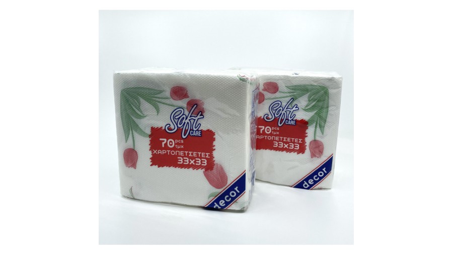 Χαρτοπετσέτες της εταιρίας SOFTCARE με σχέδια, απορροφητικές, ανθεκτικές και απαλές με το δέρμα. Ιδανικές για κάθε χρήση. 70t.