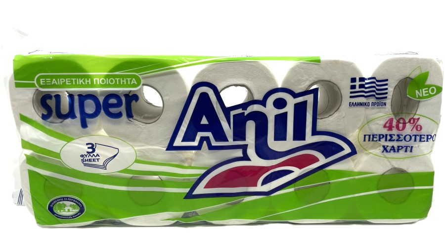 Χαρτί υγείας της εταιρίας Anil, ρολό εξαιρετικά ανθεκτικό και απορροφητικό, 3 φύλλων με επιφάνεια που βελτιώνει την αίσθηση της αφής και την απορροφητικότητα του. 120γρ.