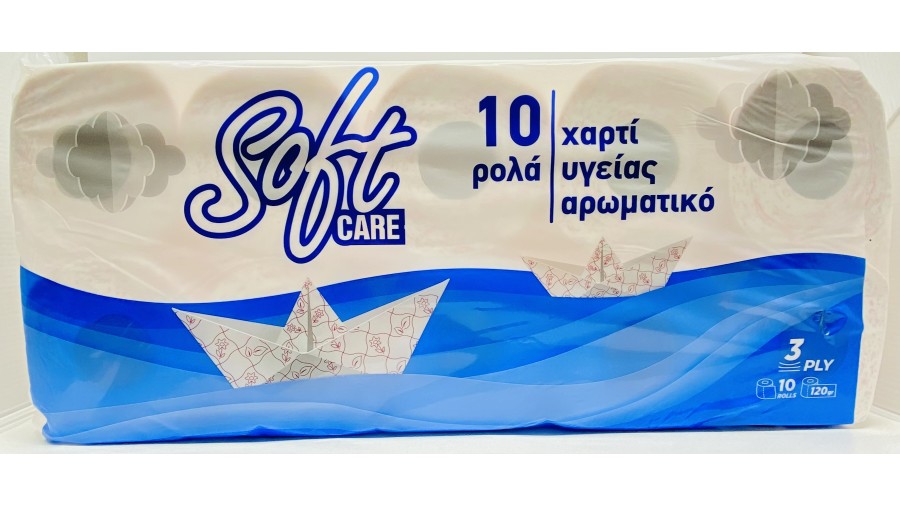 ΧΑΡΤΙ ΥΓΕΙΑΣ SOFTCARE 3Φ. 10τμχ. DECOR 120γρ .ΑΡΩΜ.ΜΠΛΕ