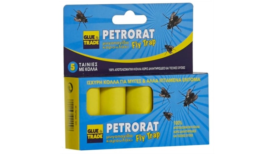 Παγίδα με κόλλα για την σύλληψη μυγών και άλλων ιπτάμενων εντόμων. Η μυγοπαγίδα καρουλάκι στο εσωτερικό της έχει μια ταινία με ισχυρή άχρωμη και μη τοξική κόλλα.