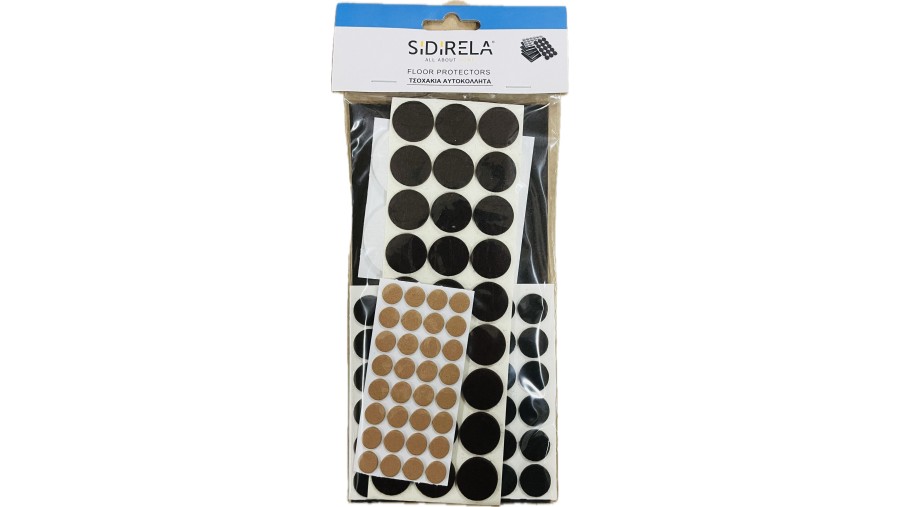 1 μεγάλο τσοχάκι καφέ σκούρο, με διαστάσεις 20 x 10 cm, το οποίο μπορεί να κοπεί στο επιθυμητό μέγεθος.4 αντιολισθητικά λευκά, με διάμετρο 4 cm το καθένα,27 τσοχάκια καφέ ανοιχτό, με διάμετρο 2 cm το καθένα,36 τσοχάκια καφέ σκούρο, με διάμετρο 1,5 cm,32