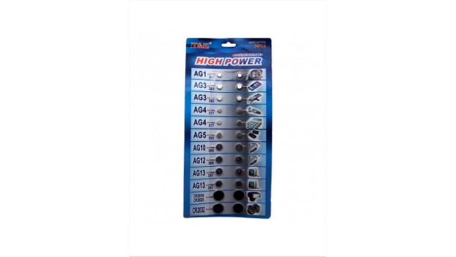 Σετ 24 μπαταριών στρόγγυλων λιθίου διαφόρων μεγεθών.