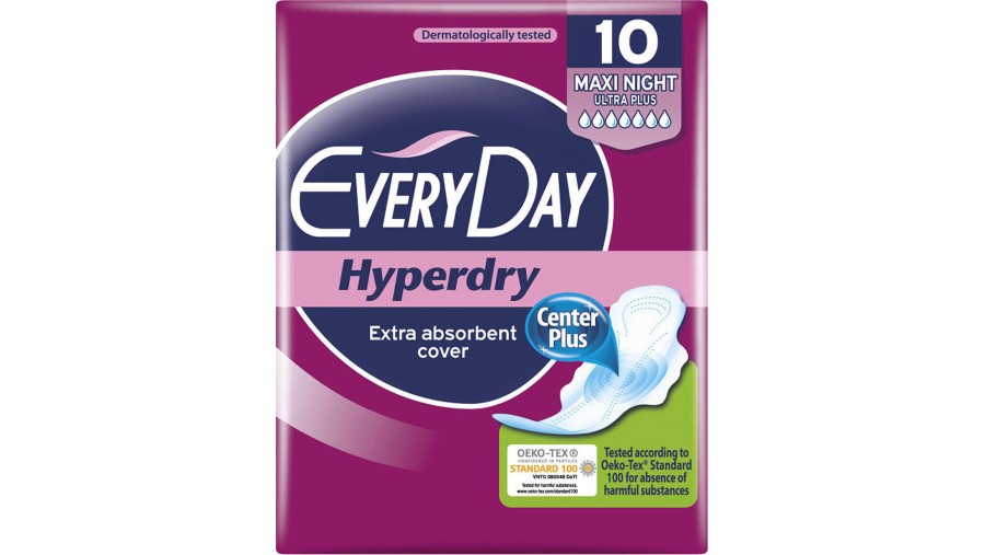 Σερβιέτες με φτερά Hyperdry Super από την εταιρεία Every Day, κατασκευασμένες από απορροφητικό υλικό ώστε να προσφέρουν ασφάλεια κατά τις δύσκολες μέρες της περιόδου.