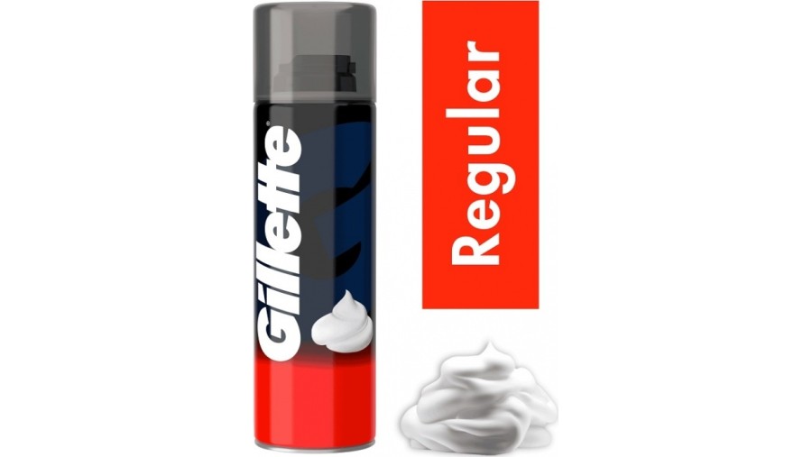 Ο αφρός ξυρίσματος Gillette Regular ενυδατώνει τα γένια για εύκολο ξύρισμα και η πλούσια υφή του προστατεύει την επιδερμίδα, καθώς οι λιπαντικοί παράγοντες επιτρέπουν στις λεπίδες να γλιστρούν πιο εύκολα.