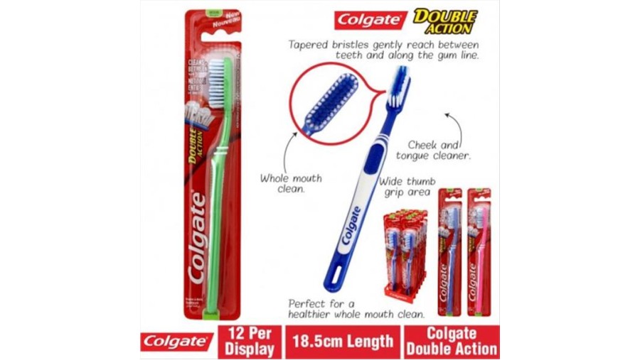 H COLGATE DOUBLE ACTION αφαιρεί την πλάκα και τα σωματίδια τροφής ανάμεσα στα δόντια. Διαθέτει μεσαίες τρίχες και εύκαμπτη λαβή που λυγίζει και απορροφά την υπερβολική πίεση για να αποφύγει τον ερεθισμό των ούλων.